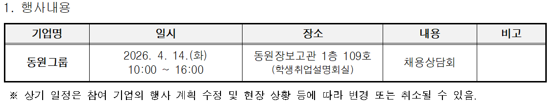 [동원그룹] 채용상담회 개최 안내