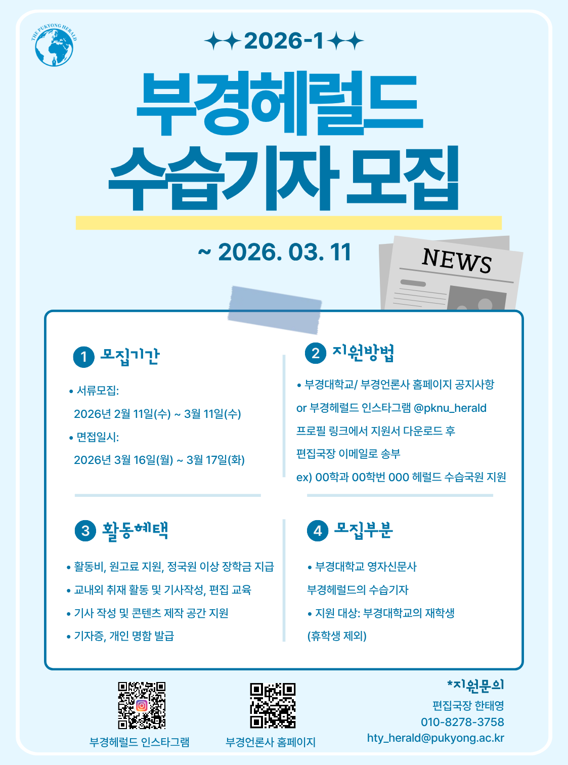 | 2026-1학기 부경대신문(헤럴드) 수습기자 모집 안내 | |||